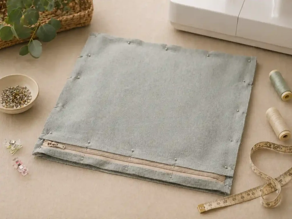 The zipper method takes longer and requires a zipper foot attachment for your machine, but the result looks genuinely professional. Clean seams on all four sides, no overlapping flap at the back — just a nearly invisible zipper along one edge. This is how most store-bought covers are made.