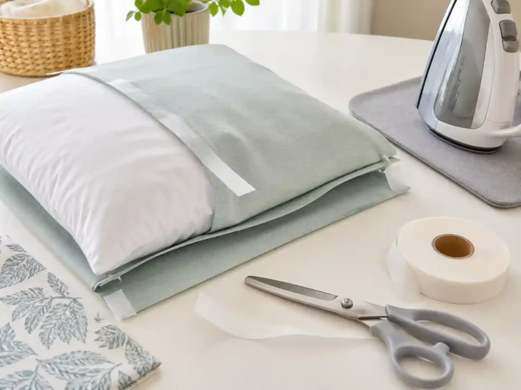 This is iron-on hem tape, and it works better than most people expect for pillow covers. You’re essentially fusing the fabric with the heat instead of the thread.